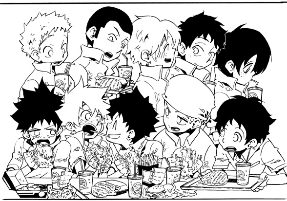 そいでですね、マネジにおにぎり配ってもらうときの全員の顔絵!これガン見したのはじめてです。阿部が笑ってないのには気付きましたが他のみんなの表情がじっくり見れて大変うれしい。まあモノクロだけどさ。ほいでこの絵見てたときに思ったのです。「一人足りん…」。全部で11人だろ…せっかく10人まで描いてんのになんでもう一人描いてあげないんだ、と。やあ…おかしいでしょ私。笑。疲れてたんです、疲れてたんですー。西浦野球部全員で10人だっつうの。なんでかそんとき私、西浦野球部全員で11人だと勘違いしたのです。11人はサッカーだっつうの笑。