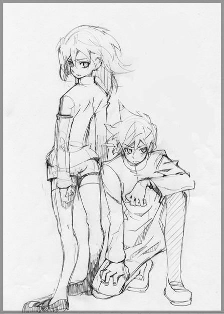 イラストサンプル画像をブログにあげてよいとのお達しがあったので公開します。今回は式部メインのはちれんがギャラリー状態です(今回はっつうのんは、前回は去年ポストカードのイラスト描かせてもらったのんです。2008年6月25日の記事参照)。このイラスト描いてる頃、ちょうど私は幽白マイブームのまっただ中でした。見たら式部のカラーリングが蔵馬じゃね?と思い、こりゃあ今回は式部主人公みたいにしないとな!と思い、式部メインにしました笑。ラフの段階では、式部とれんの2ショットとかも描きました。はれんちず、と銘打つからにははちとれんのカップリングが主軸で、かませ犬的に式部が配置されてんだろうなあと思うけど、それを逆手にとって、式部視点で話描いたら、はちが敵キャラ位置になるんだぜ!みたいな発想です。そうすると、あ、なんか式部って番外編の主人公とかできるんじゃね?みたいに気づくとおもしろいし、式部を主人公位置に置くことでファンができることもあるかもねとか思ったんですが、その構図は没になりました笑。そっちの絵のほうがより蔵馬って感じだったんですがまあいいや、自分的には楽しかったし、正直採用になった構図のほうがいいと自分でも思う笑。