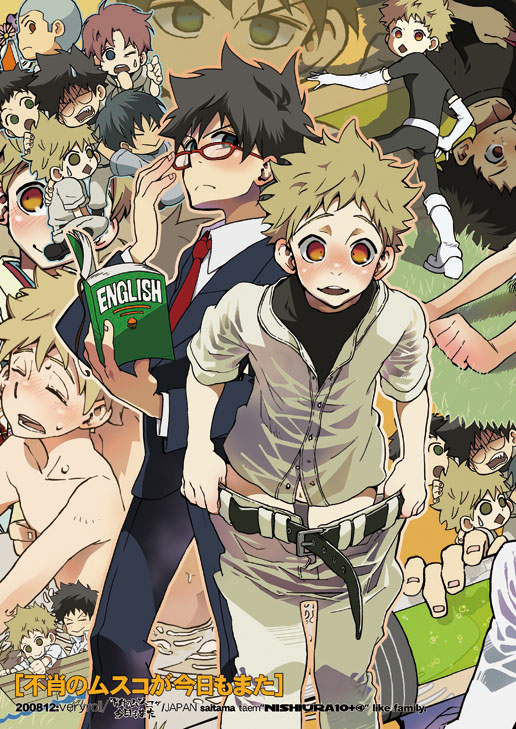 おお振りの表紙はいつもものすごく時間をかけて作るんですが、この本は過去最高に手間がかかったかもしれません。裏表紙に振り袖の三橋がいるんですが、和柄の素材など一切使わず、着物の柄を全部手で描いて塗ったのでそれだけでもアホみたいに時間がかかりました。しかも、構図の関係で半分くらいみえてない笑。2008年9月にフォトショがCS3になったんですが、この絵自体はほとんど6.0でつくっています。10月のインテあわせのつもりだったもに、発行が冬になったのは動画サイトにハマってしまい、まったくサ行が進まなくなってしまったためです。内容は例の「ナニのネタは何が好きか」話をいじり倒しています。あ、ちなみにこいつら100%パロディの満丸は畠です。というか最後まで満丸を誰にするか決めずに描いたため、別に畠に似せてもいないので絶対に分からないと思います。阿部と花井のキャスティングは我ながらうまかったと思います笑。