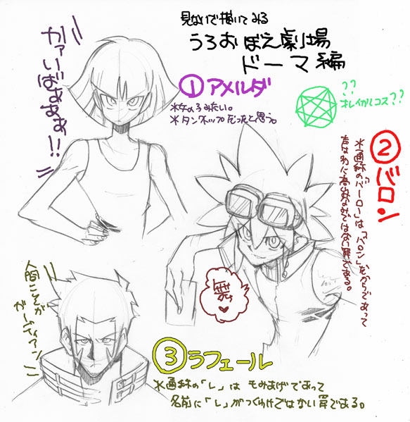 ドーマの三銃士を何も見ずに記憶をたよりに描いてみる企画。ラフェールは似る自信あったのにそうでもなかった笑。ニュアンス的に一番近いのはアメルダだと思います。バロンはひどい笑。答え合わせは各自ようつべとかでやっといてください笑。