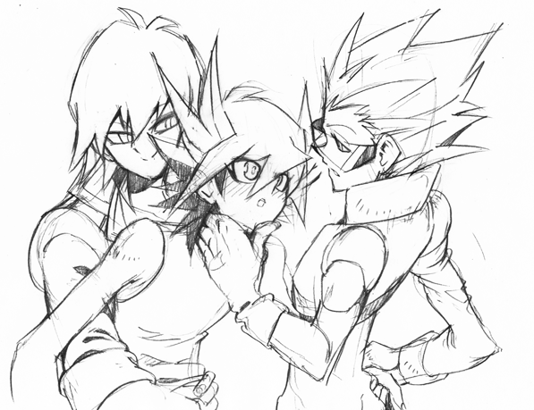 で、イベントに全く関係なく以下ブル遊絵。ちょいとおイタがすぎたので一段下げます。表ブルーノと闇ブルーノ連合軍が二人同時に遊星を攻める大人のタッグデュエルを見てもいいという方は以下からお入りください。