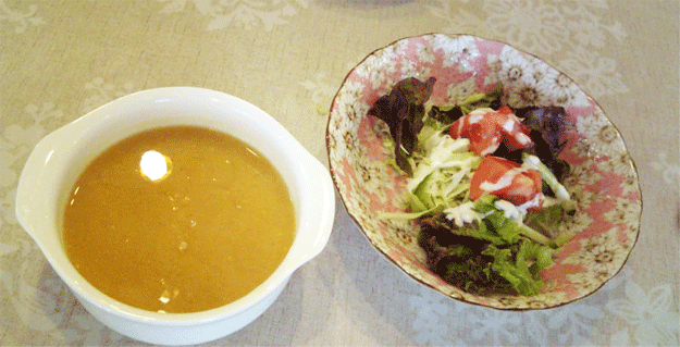 さて、件のエジプト料理を紹介します。ランチメニュはスープ、サラダ、メイン、紅茶orコーヒーとなっておりました。