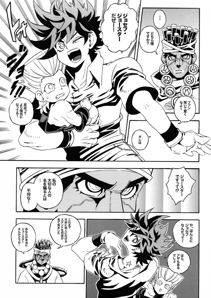 第三部のメイン5人、承太郎さん、ジョセフ、ポルナレフ、アヴドゥルさん、花京院、この5人をとにかく描いていたくてって出した本。自分が描きたいよーに描いたので需要がどんなもんなのかは分かりませんが、イベント参加される方は是非見に来てみていただけたらと思います。オールキャラで、万人向けなつもりだったんだけど、やっぱし男同士でいちゃこらしてまさァな笑。でもジョセフとアヴドゥルはセーフだろう!だって原作でもいちゃこらしていたんだからさあ〜〜。つうわけでジョセフ(若)とアヴドゥルがいちゃこらする絵面がございますんで苦手な方はご注意をば。そう、やっぱ私としては2部も読みたてで新鮮なもんだから、若姿のジョセフもちょいと登場しちゃっているよ。2部好きの方も是非。
