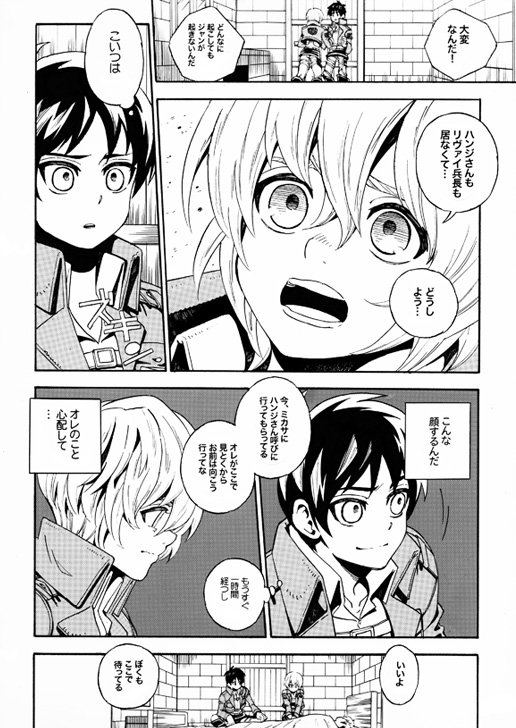 ひょんなことからエレンとジャンの体が入れ替わってしまう!そのときアルミンは!?ほのぼの系ストーリー1本。