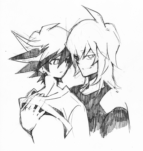 それはそうと、ブルーノちゃんは絶対AB型だと思う。血液型。ダグラスさん、アンチノミー君はデュエルスタイルはA型だと思うが性格面ではどうかな、意外とOな気もする。ブルーノちゃん人格はABだ。っていうか、わたしはそう思って描いてる。それは5つのD発言や、青いサングラスをしれっとかけて出て来たりとどうゆうつもりだ…的な行動に依ってそう思っています。