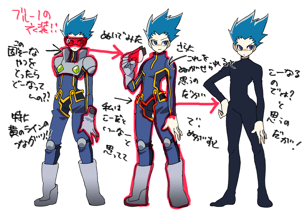 あの、上半身の固そうなヤツ、サイヤ人の戦闘服みたいなアレを脱いだときどうなってんのか知りたい。黄色のラインが上下でつながらないのが気になる。あの上着はカーディガンみたいに羽織るんじゃなくて、かぶっちゃうんじゃなかろうかと思う。ハイネックの所に見える黄色のラインがジッパになっていると着やすそうだ。