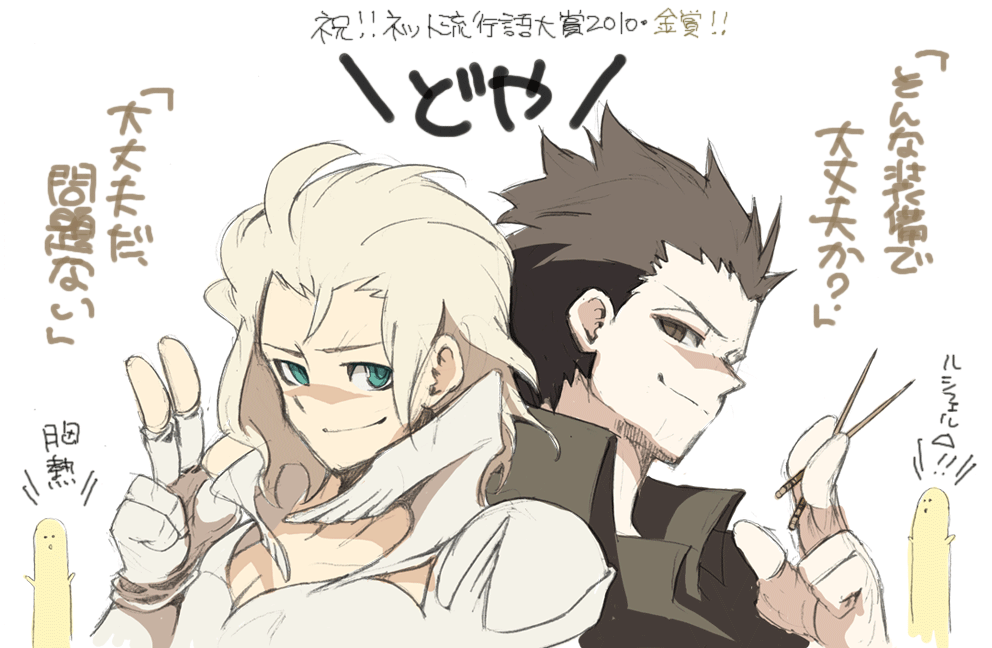 シャダイが流行語大賞トッタノデス!!!!数週間前、偶然ニコ割りで流行語大賞のアンケートに遭遇し、当然!そんな装備でに投票。12月2日が発表と知り、この日を大変楽しみに待ちわびていました。流行語大賞とは、流行語、というより話題になった語大賞だと私は感じていました。実際使われた語よりも、話題性のある語(世相を反映している語)が選ばれると思っておりましたので、特に意味のないシャダイ語は大賞は無理だろうと、でも特別賞的な賞は取りたいなと思っていました。だって実際「流行した語」だと思うので。それが金賞とはな!!!!うれしいなあ、私も遅ればせながら気に入っては使用していた語なのでほんと、うれしいなあ。ネットで盛り上がってるだけの中途半端なファンで、ガチのファンの方や、ゲームを開発している方には迷惑な存在かもしれないので、そこはしっかり自重して、こっそりと応援したいなあと思っています!