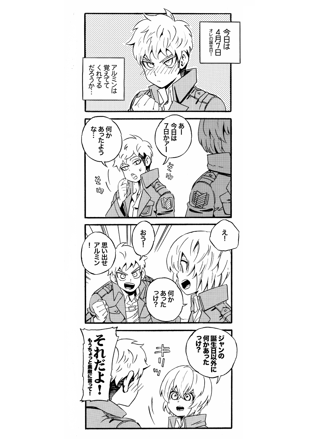 今月の一問一答のコーナー衝撃でしたね。ジャンアル的に。一体誰があんな質問送ってるんだ!!!!GJ!!!!そしてなんであんなにアルミンがらみの質問の採用率が高いんだ!!!!GJ!!!!